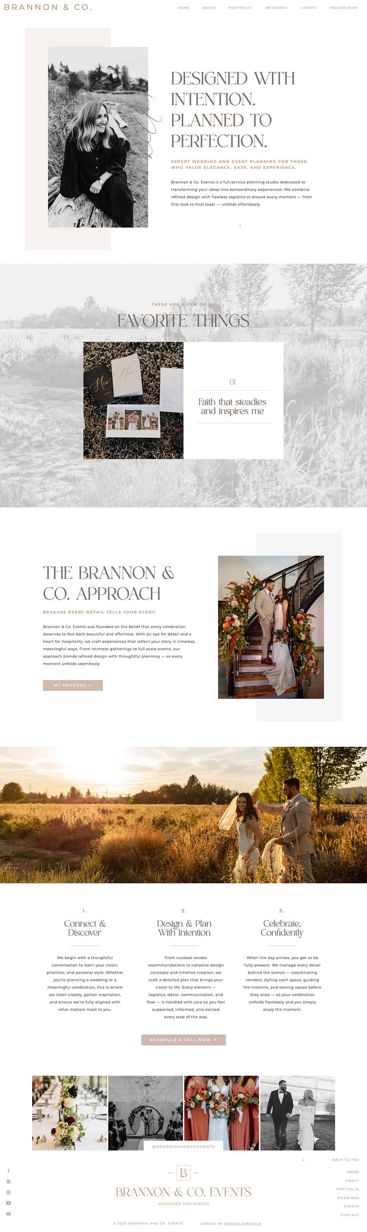 Heather Kuns with Brannon & Co, a wedding and event planner based in the Pacific Northwest, is a perfect example of this. She used my Arden Rose Showit Template, originally designed for photographers, and transformed it into a refined, editorial website that fits her planning business beautifully.